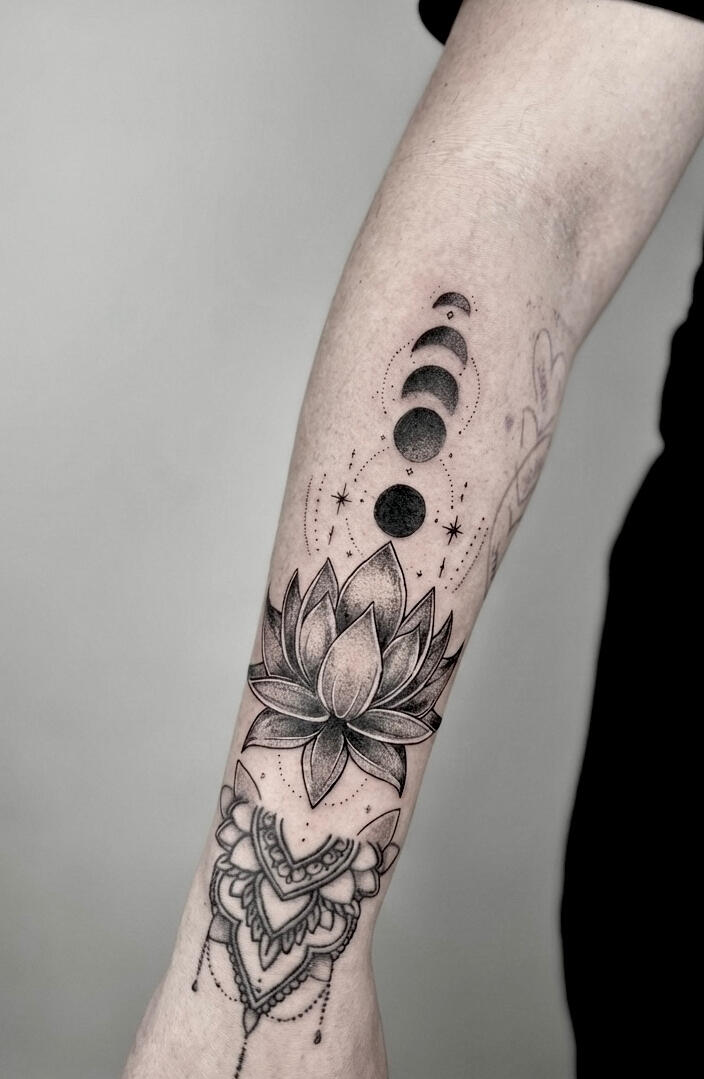 I focus on personal tattoos, working with fine line, ornamental details and symbolic elements.